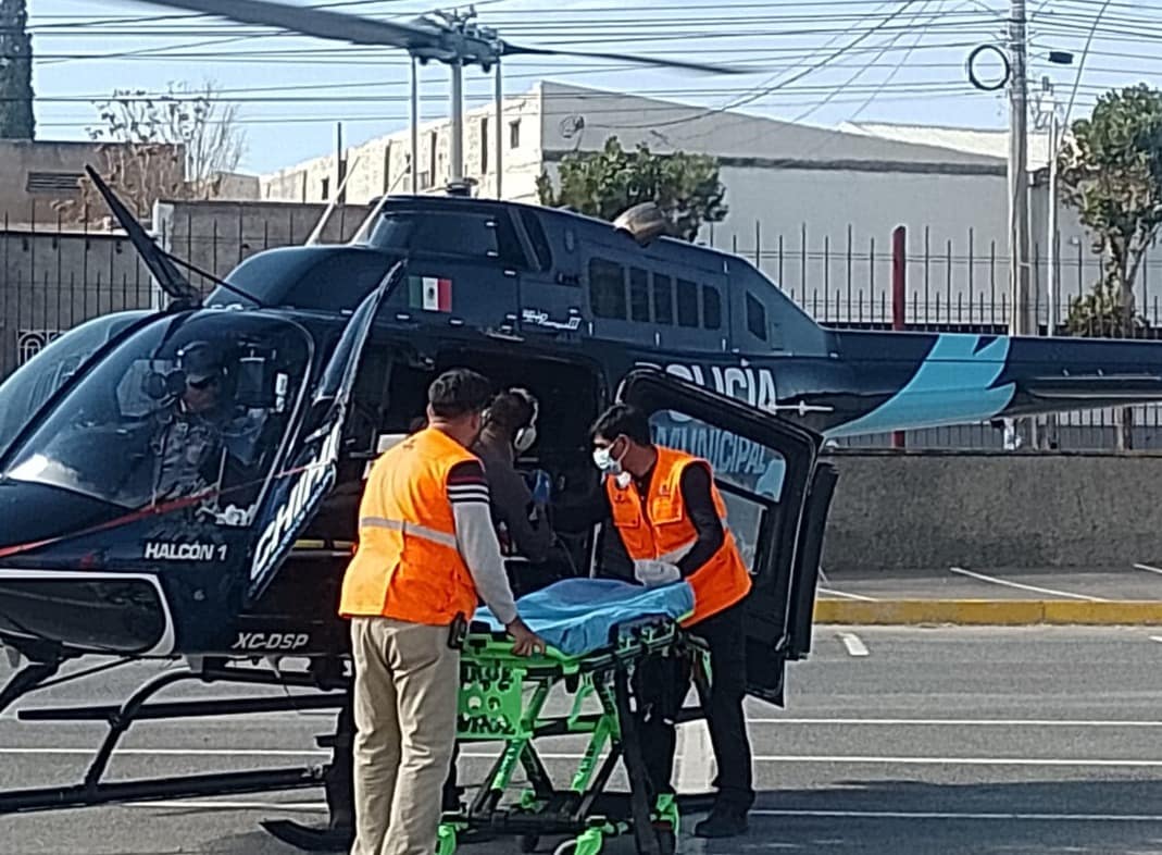 Chihuahua, Chih.- A bordo del helicóptero Halcón I de la Policía Municipal, fue trasladada la mañana de este jueves una mujer gravemente herida, en un accidente carretero a la altura del kilómetro 130 en la carretera a Juárez, cuando al parecer viajaban 9 personas del estado de Oaxaca a bordo de una camioneta Ford Explorer de reciente modelo.