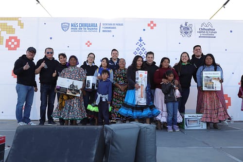 Chihuahua, Chih.- El Gobierno Municipal, en coordinación con la Secretaría de Pueblos y Comunidades Indígenas del Gobierno del Estado, celebró ayer la Posada Navideña «Napawíka Omawába Pásikochi: Celebremos Juntos la Navidad» en el Estadio Almanza.