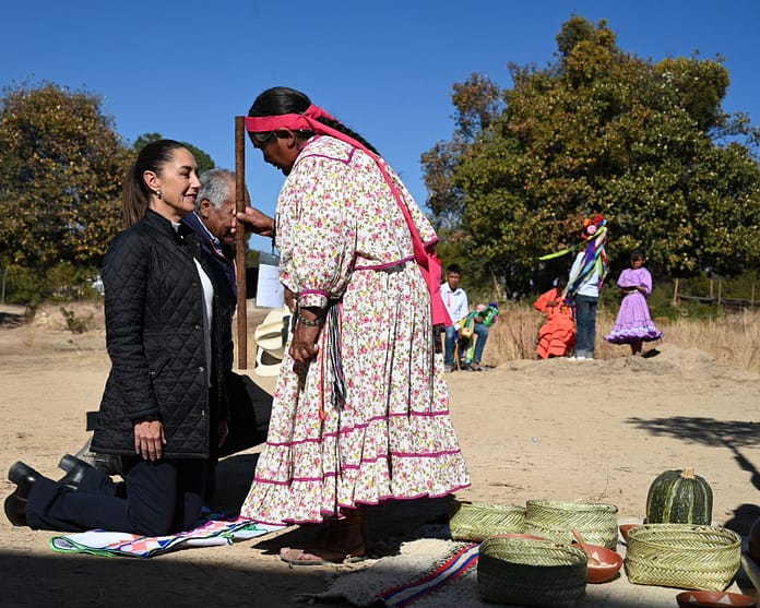 También, el gobernador tradicional de la Comunidad de Mogótavo, Luis González Rivas, reconoció a la Presidenta de México, Claudia Sheinbaum Pardo, por ser la primera Jefa del Ejecutivo Federal en visitar esta zona de la Sierra Tarahumara.