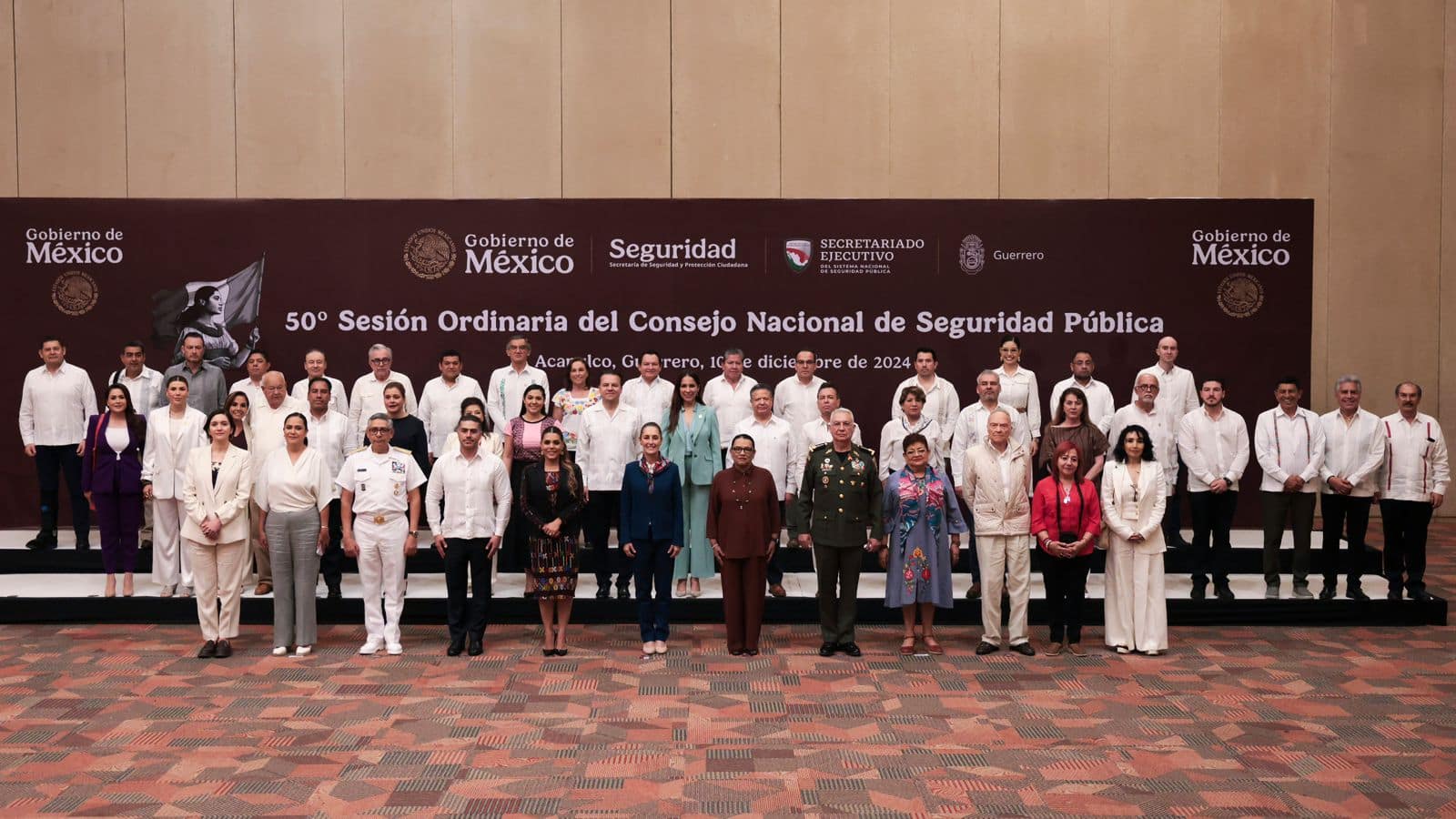 Al encabezar la 50° sesión ordinaria del Consejo Nacional de Seguridad Pública, la Presidenta, Claudia Sheinbaum Pardo, destacó que juntos y juntas: el Gabinete de Seguridad, así como gobernadores y gobernadoras de todo el país, lograrán construir paz y seguridad en México.