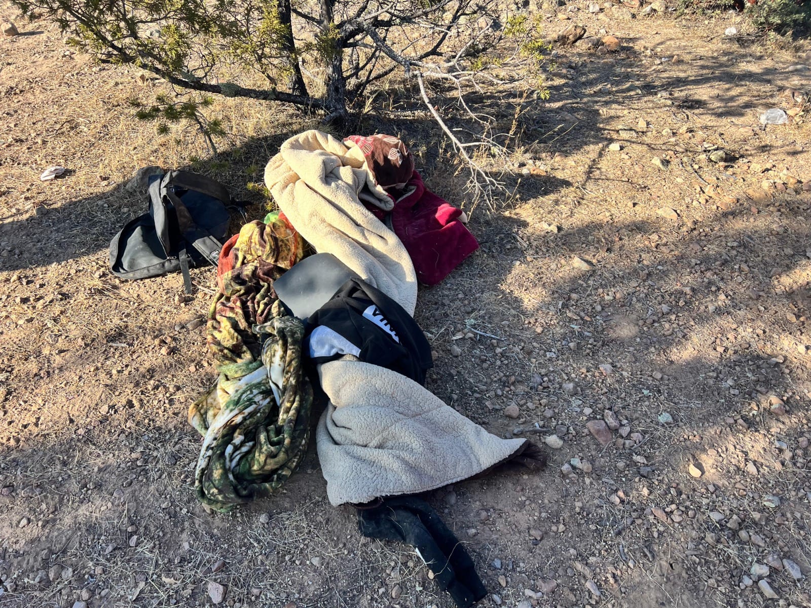 Tras los recorridos coordinados, en la serranía se localizaron dos vehículos, los cuales se detectaron desde las alturas a un lado del campamento, hecho que permitió posicionar a los elementos terrestres, quienes se percataron también de la existencia de alimentos y cobijas.