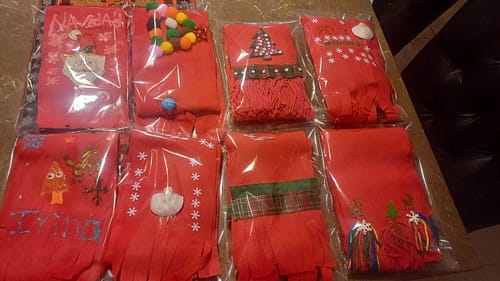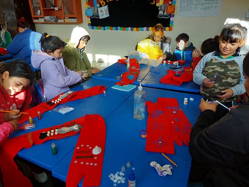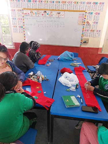 Desde temprano, los salones de la escuela se llenaron de colores, risas y creatividad. Los niños, con la ayuda de sus familias, pintaron, bordaron y añadieron detalles únicos a las bufandas, como mensajes de amor, dibujos navideños y pequeñas decoraciones.