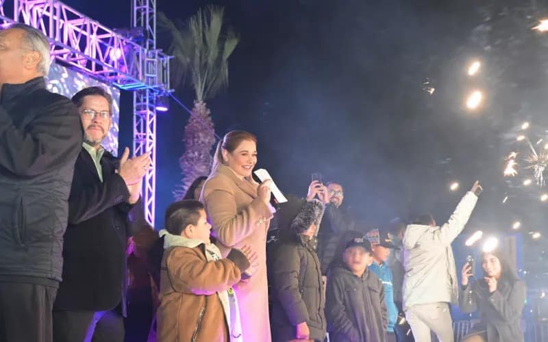 La gobernadora Maru Campos celebró con las y los juarenses el inicio de las fiestas decembrinas, al encabezar el encendido del tradicional Árbol de Navidad en el Parque Central de la ciudad fronteriza.