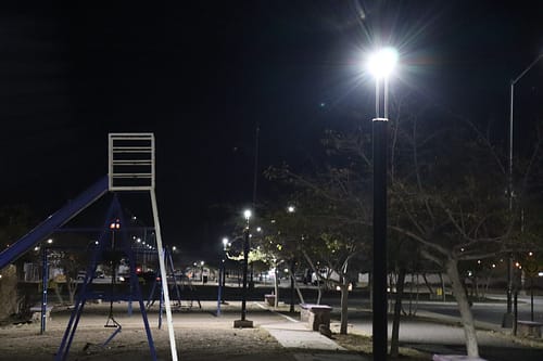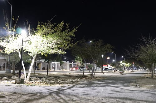 Chihuahua, Chih.- El Gobierno Municipal, a través de la Dirección de Mantenimiento Urbano, modernizó el alumbrado público a luz LED en el camellón central y área verde ubicada en la calle Río Atuel.