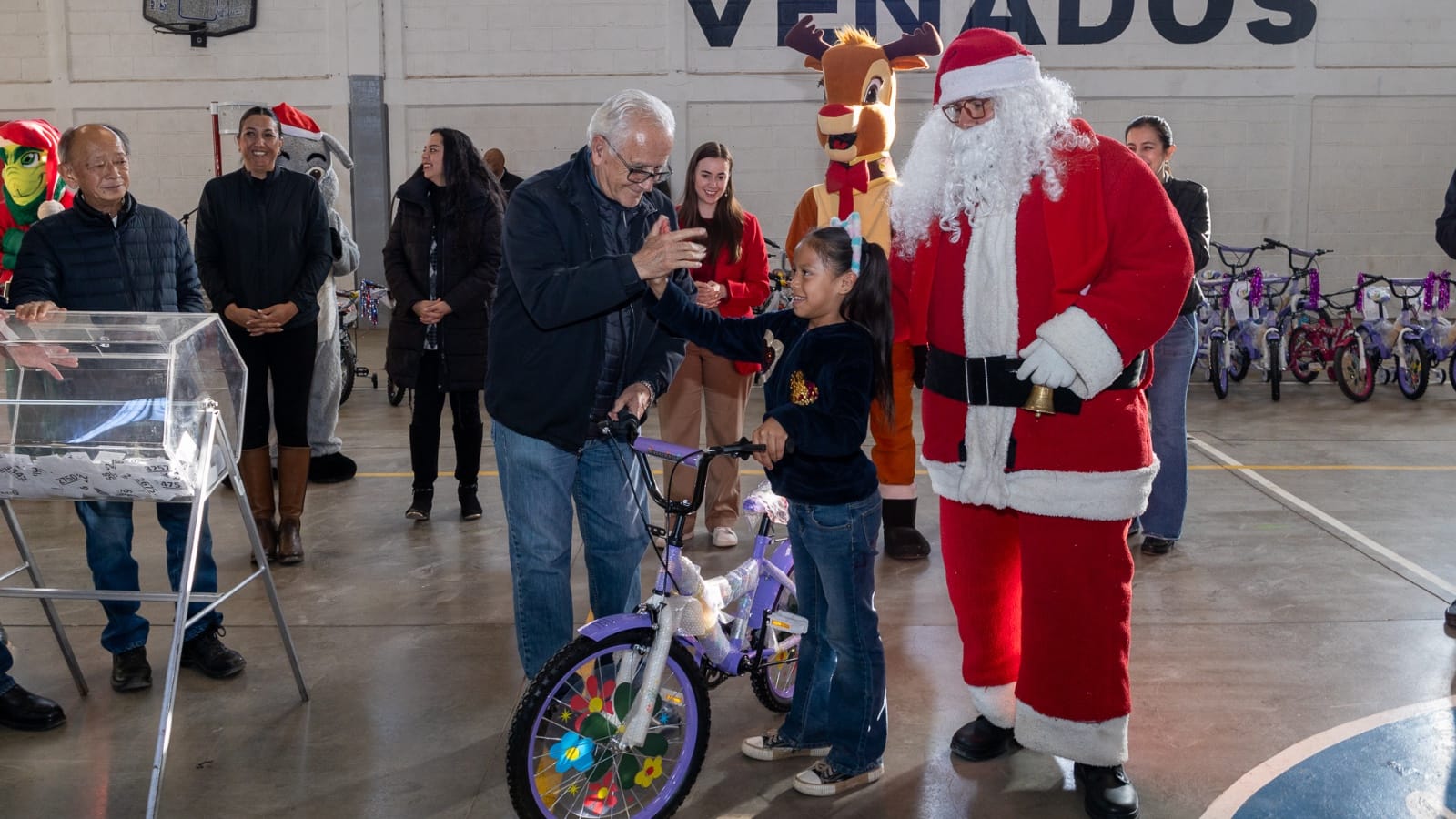 Cd. Cuauhtémoc, Chih.- El Gobierno Municipal a través de la Dirección de Desarrollo Social realizó 4 posadas en las colonias, donde llevó a cabo el sorteo de 30 bicicletas en cada una, así como la entrega de dulces a todos los niños, y de ponche y buñuelos para todos los asistentes.
