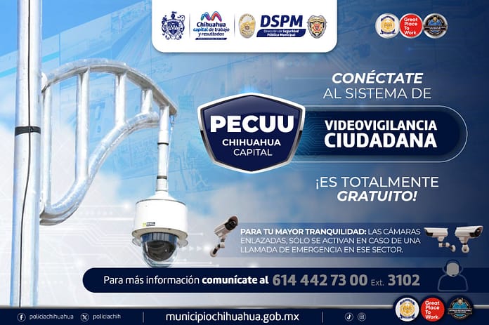 Chihuahua, Chih.- La Dirección de Seguridad Pública Municipal (DSPM) invita a personas que cuenten con sistemas de videograbación en sus viviendas, negocios o escuelas, se adhieran a la Plataforma Escudo Chihuahua Capital (PECUU) para contribuir a la