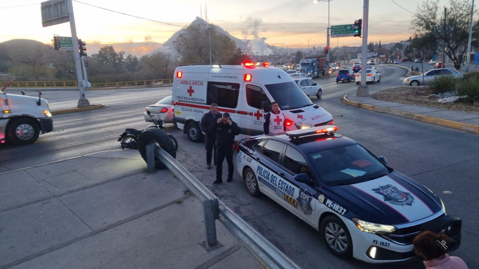 Paramédicos de Cruz Roja, atendieron a un hombre de 50 años con diversos golpes, luego de que cayera de su motocicleta de la marca Italika al derrapar.