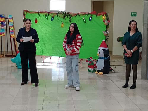 La presentación artística incluyó una exposición de dibujos y pinturas realizados con la técnica de acuarela y crayola sobre diferentes temáticas, además de la interpretación de villancicos y bailables.