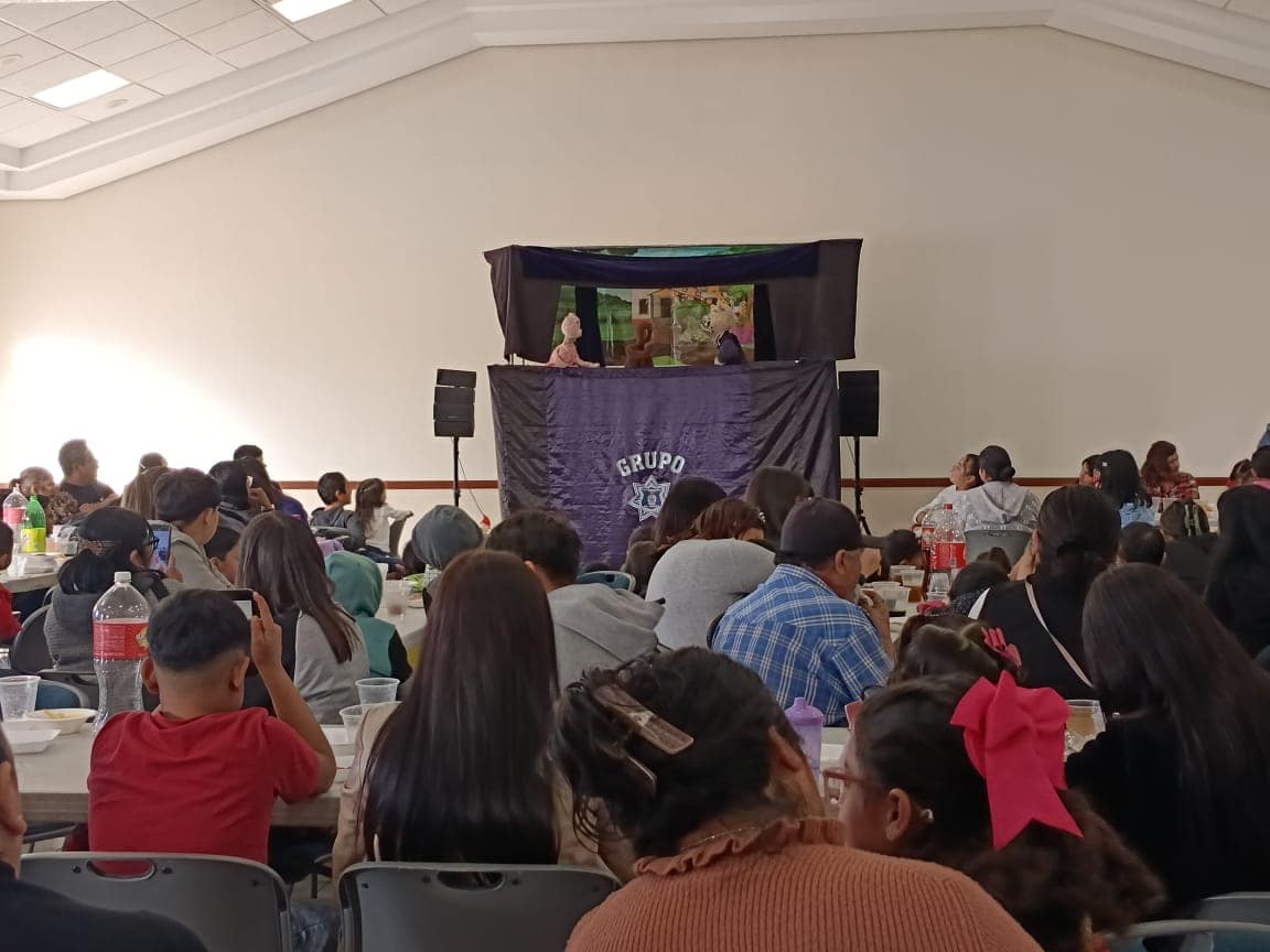 Los asistentes que se dieron cita en la congregación evangélica conocida como Iglesia de Jesucristo de los Santos de los Últimos Días, ubicada en la colonia Praderas de los Álamos, donde fueron espectadores de una obra de teatro la cual a través de divertidos personajes aprendieron lecciones importantes, a los cuales les dan vida los agentes preventivos, logrando impactar sobre temas de seguridad a los más pequeños.