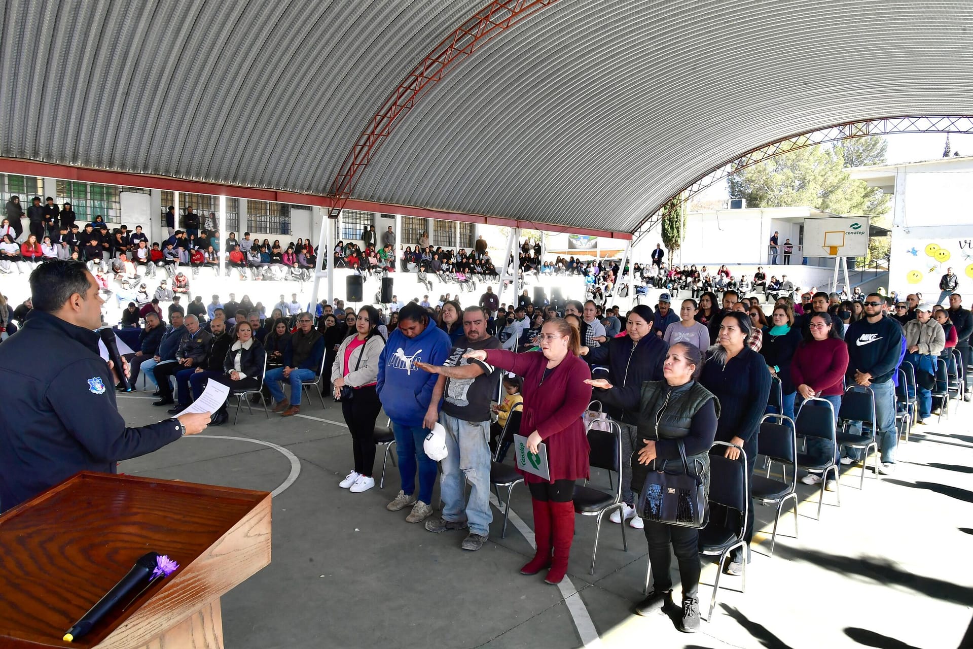 En un esfuerzo por consolidar la seguridad ciudadana y fortalecer los lazos entre la comunidad y el gobierno, el secretario de Seguridad Pública del Estado, Gilberto Loya Chávez llevó a cabo la toma de protesta del proyecto Identidad Centinela, para alumnos, padres de familia y profesores del Conalep Parral.