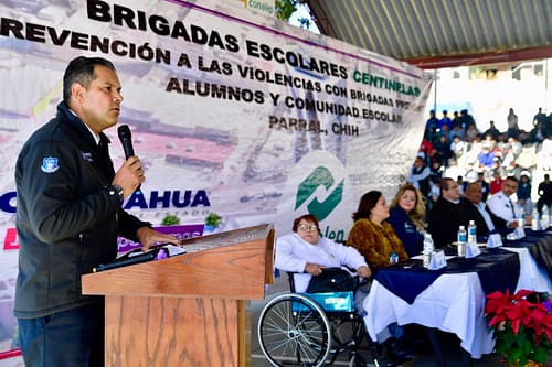 Durante esta ceremonia, estuvieron presentes autoridades destacadas, como la Subsecretaría de Participación Ciudadana y Prevención del Delito, Rosa Isela Gaytán Díaz, el Presidente Municipal de Hidalgo del Parral, Salvador Calderón Aguirre; Nora Carrillo, Presidenta del DIF Municipal de Parral; Carlos Javier Pineda, Director de la Policía Municipal de Parral; y Eva Espinoza, directora del Colegio Nacional de Educación Profesional Técnica (Conalep) Parral.
