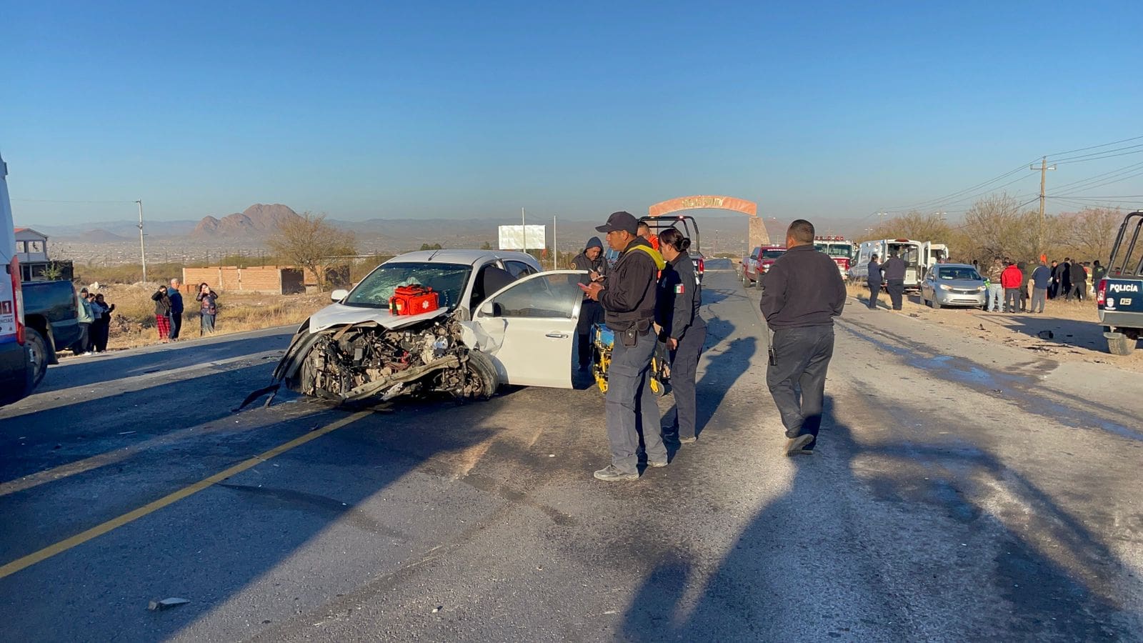Tres personas lesionadas fue el Salto que dejó un aparatoso choque en la carretera a Delicias cerca del entronque que va hacia San Guillermo.