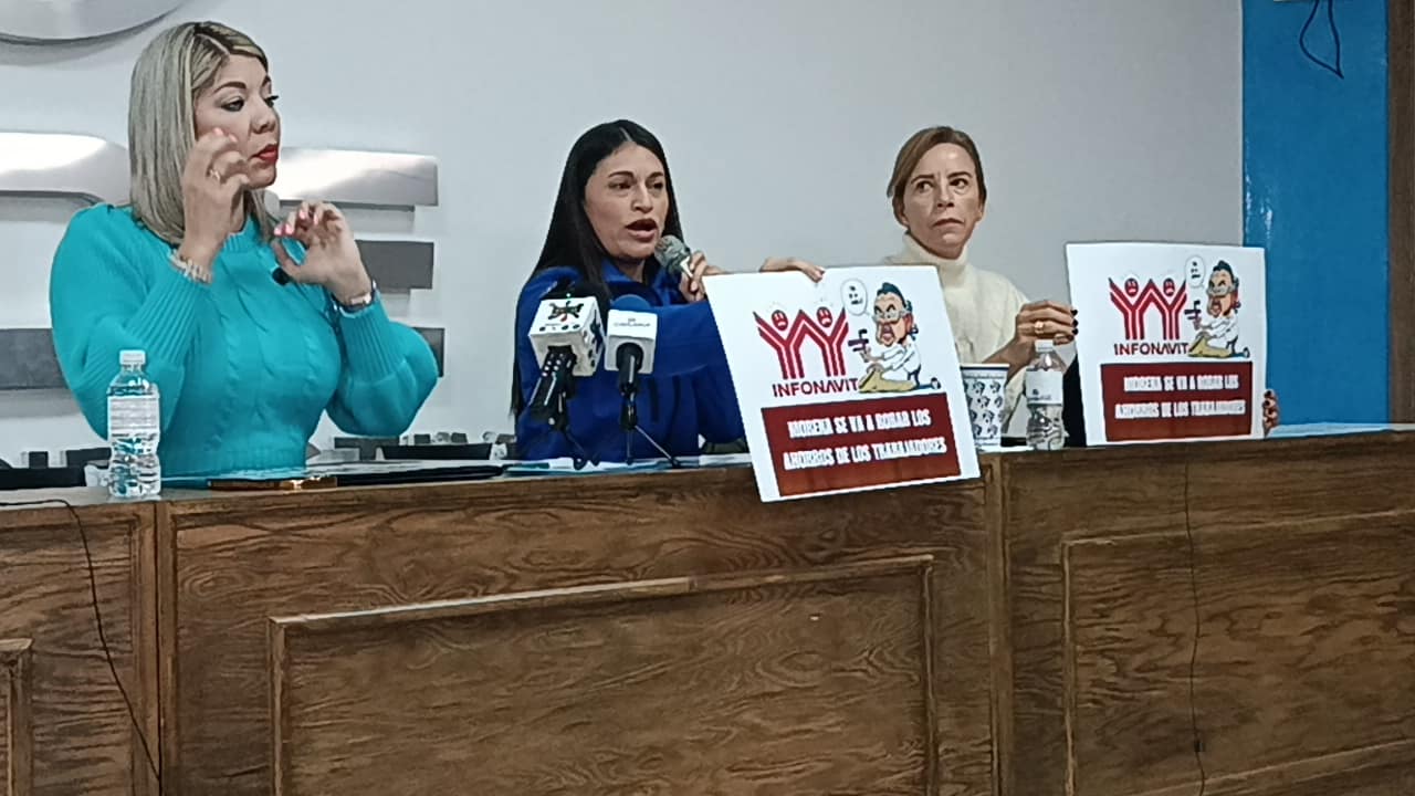Chihuahua.- Las diputadas federales del PAN María Angélica Granados y Rocío González, denunciaron que la reforma al Infonavit, misma que se quedó pendiente de aprobar en el Congreso de la Unión, pretende quitar los ahorros a los mexicanos, más de 2 billones de pesos, eso porque el gobierno federal está quebrado; explicaron que Morena va ahora por los ahorros del Infonavit y posteriormente irán por las Afores las cuales son cerca de 5 billones de pesos.