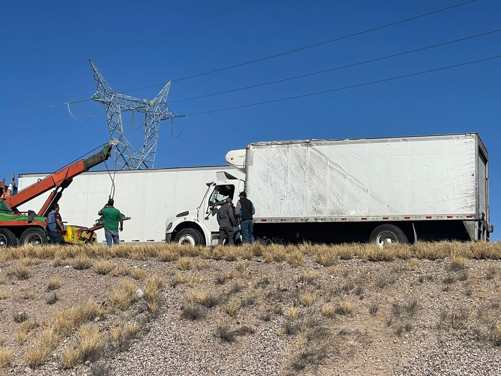 Un camión cargado con carne de res, volcó a la altura del kilómetro 180 de la carretera Delicias- Chihuahua, generado congestionamiento vehicular debido a que quedó sobre el carril izquierdo.