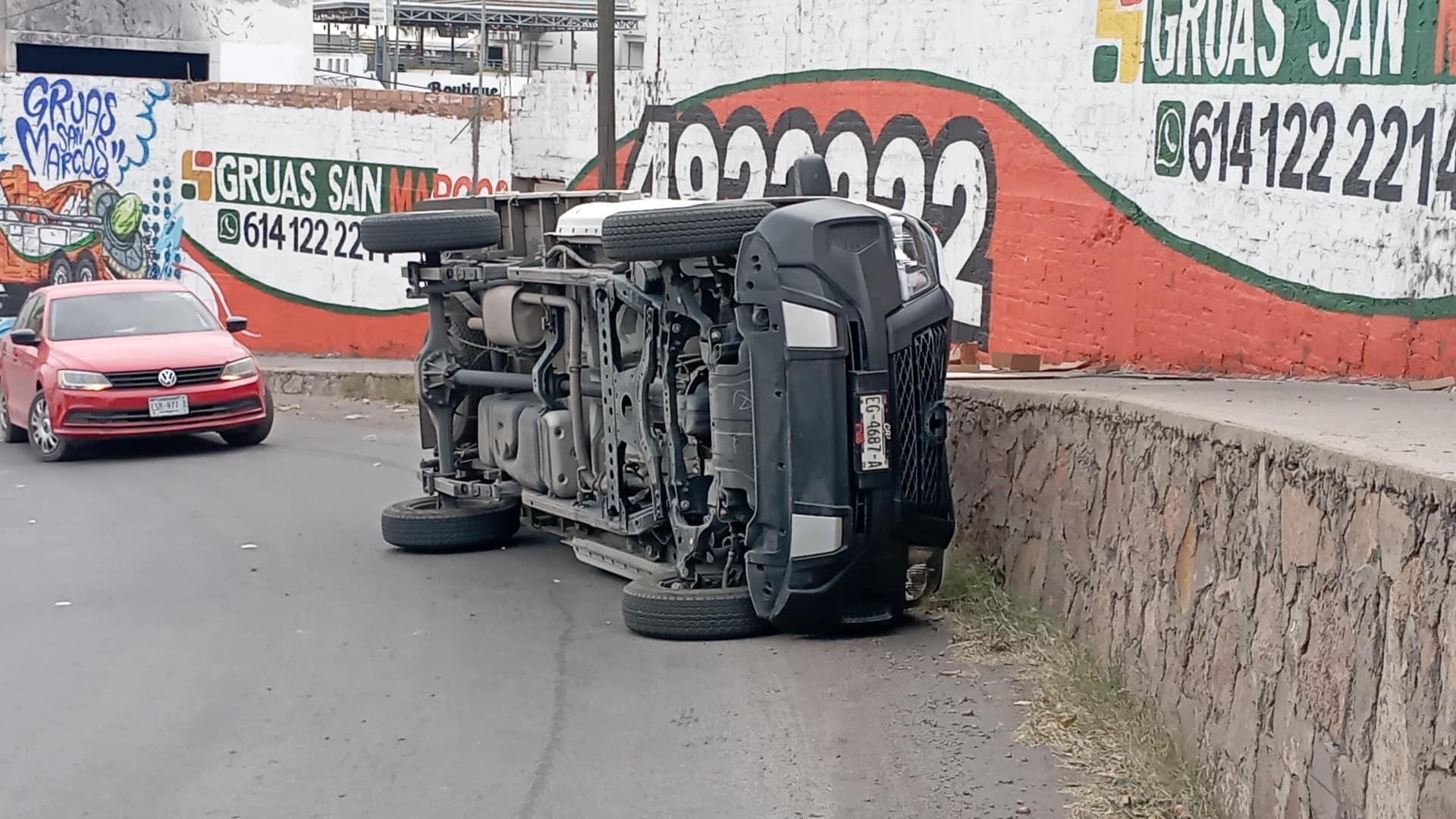 El conductor de una pickup Nissan de carga, volcó en su costado izquierdo, luego de subir la rampa de acceso que va desde la avenida Teófilo Borunda hacia la avenida Ocampo en su lado norte.