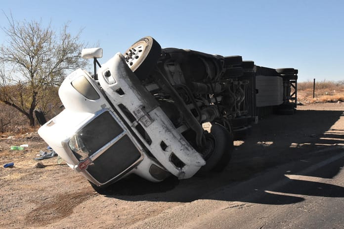 Un camión de la empresa CIF, con el número económico F-50 que transportaba tarimas, volcó a la altura del Kilómetro 12 de la carretera juárez-chihuahua libre, también conocido como las curvas del perico.